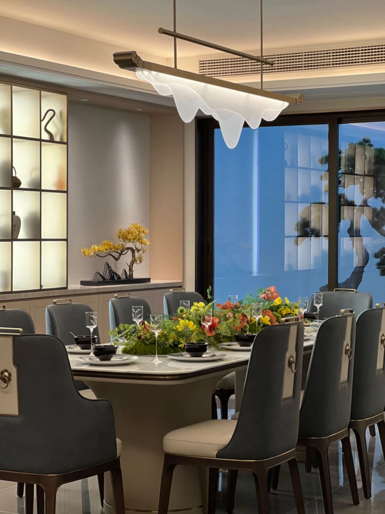 继承浓厚文化底蕴的基础上,大胆的加入现代元素,用现代的创作手法,把传统的中式文化精髓与现代得出材质设计理念巧妙的融为一体。